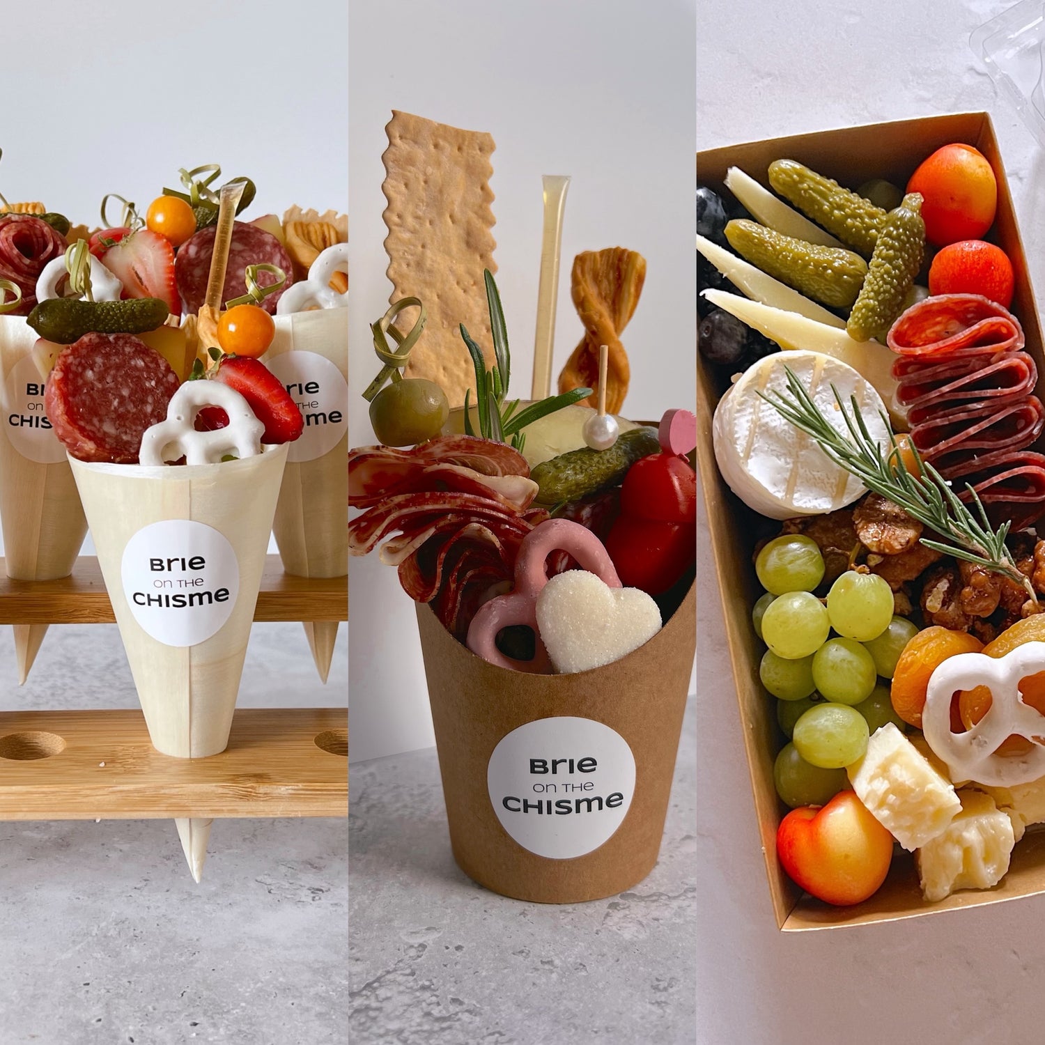 Single-serve items include a variety of gourmet cheeses, meat of your choosing, honey, cracker, nuts, and an assortment of fruits based on seasonal availability.